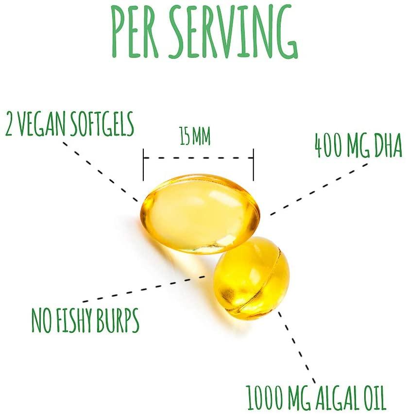 Enjoy the connivence of only having to take 1 serving per day that includes 2 small easy to swallow Vegan Sofgels (15mm in size) with no fishy burbs!